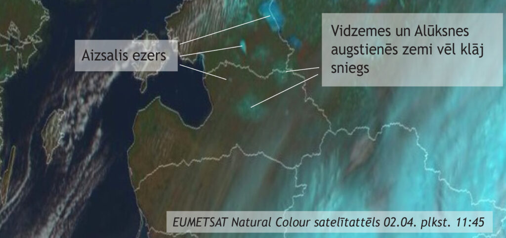 Maksimālā gaisa temperatūra sestdien Latvijā bija +2..+6 grādi.