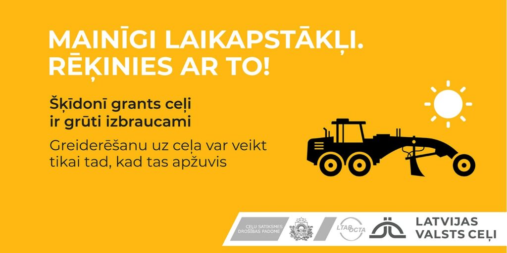 Autovadītājiem ir jābūt īpaši uzmanīgiem, izvēloties autoceļa seguma stāvoklim atbilstošu braukšanas ātrumu un ievērojot drošu distanci ar priekšā braucošajiem transportlīdzekļiem. Par apgrūtinātiem braukšanas apstākļiem vai citiem ar satiksmi un ceļu stāvokli saistītiem novērojumiem var informēt, zvanot pa diennakts bezmaksas informatīvo tālruni 80005555, kā arī uzņēmuma “Latvijas Valsts ceļi” kontos sociālās saziņas tīklos Twitter un Facebook.