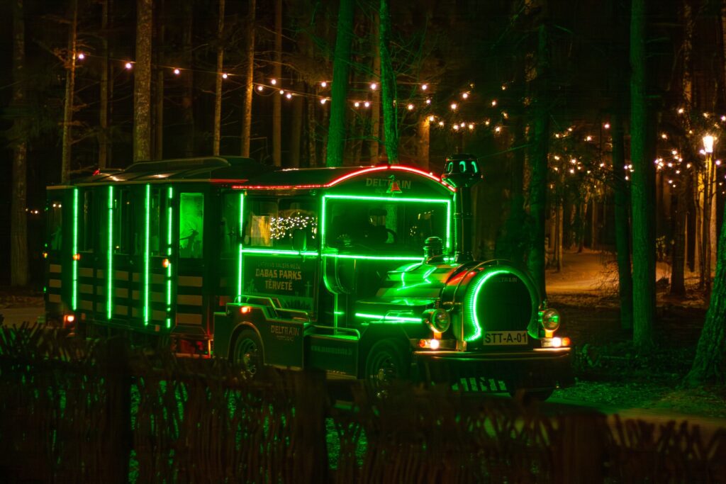 Pasākuma laikā parka takās kursēs gaismām rotāts pasaku bānītis. Maksa par vienas pieturvietas braucienu: 1,50 eiro/personai. Uzrādot Goda ģimenes apliecību “3+ Ģimenes karte”, braucienam ar Pasaku bānīti 50% atlaide.