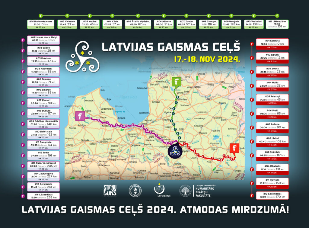 Dienu pirms vēsturiski nozīmīgā notikuma – Latvijas dzimšanas dienas, 17.novembrī no trīs mūsu valsts nozīmīgu ezeru – Usmas, Rāznas un Burtnieka – krastiem aizsāksies lāpu skrējiens “Latvijas Gaismas ceļš”, kas triumfēs Likteņdārza amfiteātrī 18.novembrī, īsi pirms saulrieta, pulksten 16, portālu informēja rīkotāju pārstāve Gunta Šmidre.
