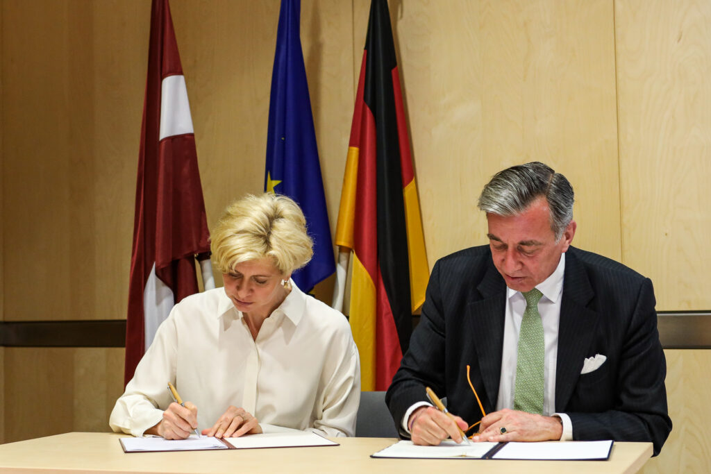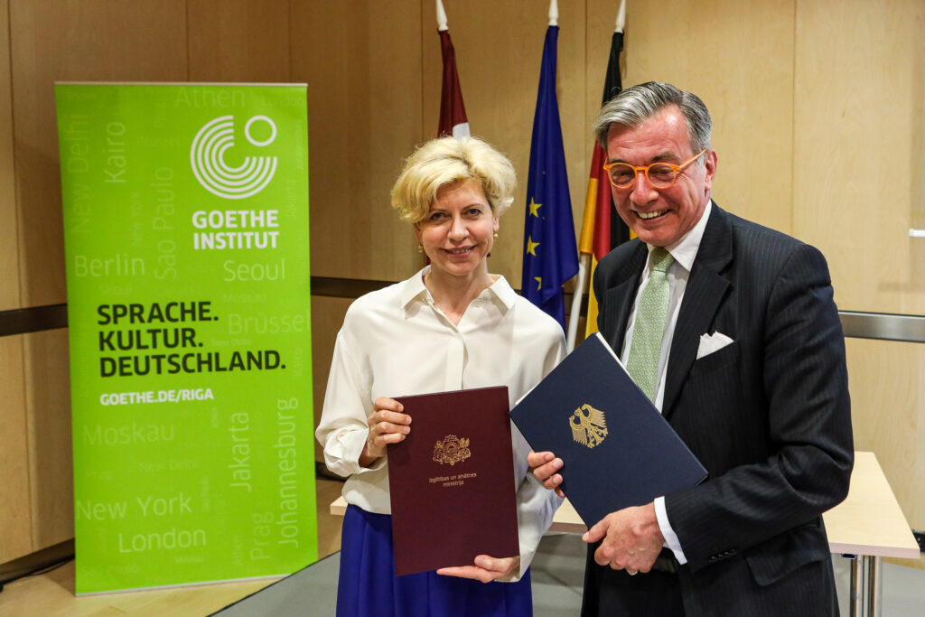 Šodien, 22. maijā izglītības un zinātnes ministre Anda Čakša un Vācijas Federatīvās Republikas vēstnieks Latvijā Kristians Helts, piedaloties Gētes institūta Rīgā vadītājai Ulrikei Vircei, parakstīja Kopīgo nodomu deklarāciju par vācu valodas skolotāju paātrinātu sagatavošanu. Kopīgā nodomu deklarācija ir intensīva darba rezultāts, kurā kopš 2023. gada sākuma iesaistījās Izglītības un zinātnes ministrija (IZM) un Vācijas vēstniecība kopā ar Gētes institūtu Rīga. Deklarācijā ir paredzēta kopīgas programmas izveidošana, kuras ietvaros līdz 2026. gada vasarai tiks sagatavoti vairāki desmiti vācu valodas skolotāju darbam Latvijas skolās, portālu informēja IZM.