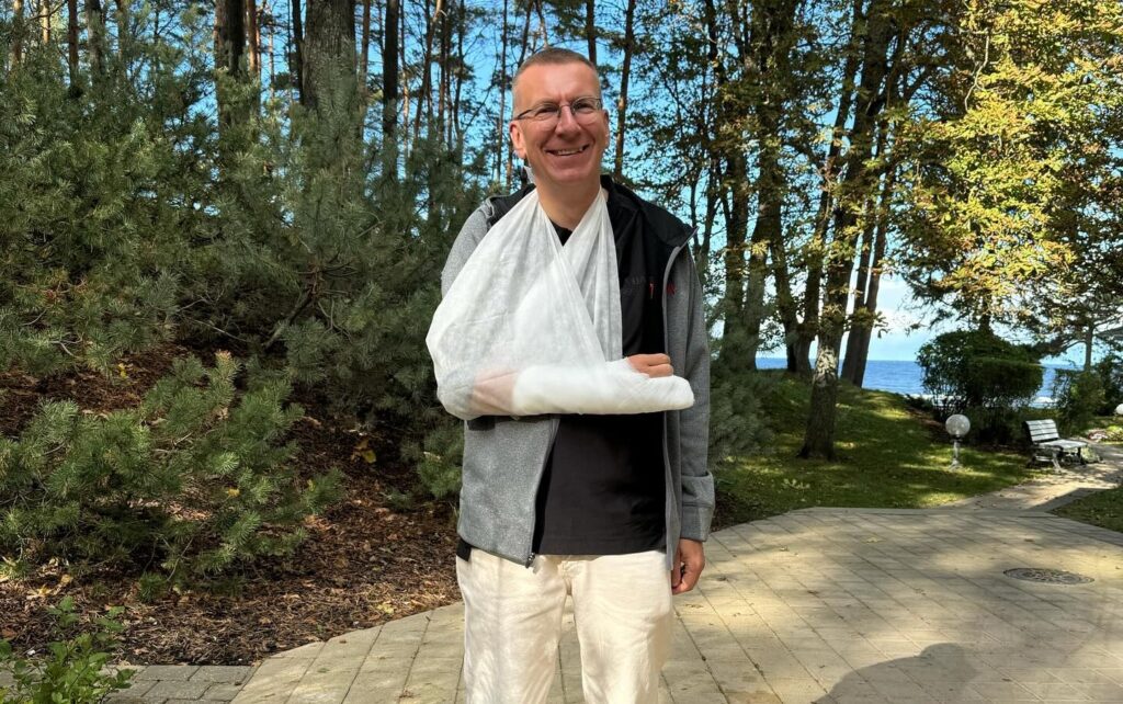 “Liels paldies dakterim Krišam Rozenbergam un Traumatoloģijas un ortopēdijas slimnīcas personālam par palīdzību ne pārāk gudram pacientam,” raksta prezidents, uzslavējot Latvijas mediķus, kas esot labākie pasaulē.