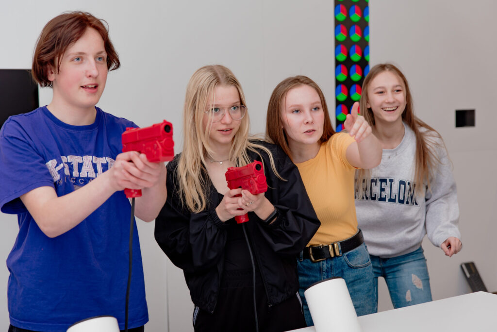 Bērnu galerija ar skaņu slāpējošu sienu ir atdalīta no četrām mācību klasēm, kur no nākamā mācību gada sāksies bērnu digitālo pulciņu nodarbības, bet jau šovasar darbosies skolu nometņu dalībnieki. Bērnu galerijas otrā pusē – apaļš logs, aiz kura drīzumā tiks ierīkota prototipēšanas laboratorija, kur skolēni varēs paši veidot nākamo izstrādājumu prototipus.