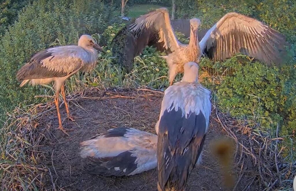 Video tiešraidē redzamajā balto stārķu ligzdā, kas izvietota uz viena no uzņēmuma “Sadales tīkls” elektroapgādes balstiem un kuras iemītnieki nodēvēti par Fāzi un Voltu, braši aug četri jaunputni. Tiešraides skatītāji novērojuši, ka vecāki atvases baro vairākas reizes dienā, tie ātri vien pieņemas spēkā un jau apgūst lidošanas prasmes, portālu informēja uzņēmuma pārstāve Alīna Kozlovska.