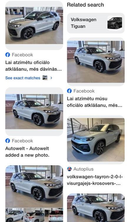 «Atliek šo attēlu pārbaudīt «Google», lai saprastu, ka vairāki uzņēmēji «vēlas» dāvināt tieši šo automašīnu. Kā to varat izdarīt paši? Atveriet «Google Images». Meklēšanas lodziņā redzēsi fotoaparāta ikonu (vai arī teksta vietā “Search by image”). Nospied uz tās: