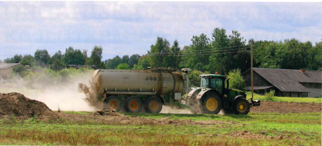 Attēlā – mēslu izkliedēšana. Foto avots: zemniekusaeima.lv