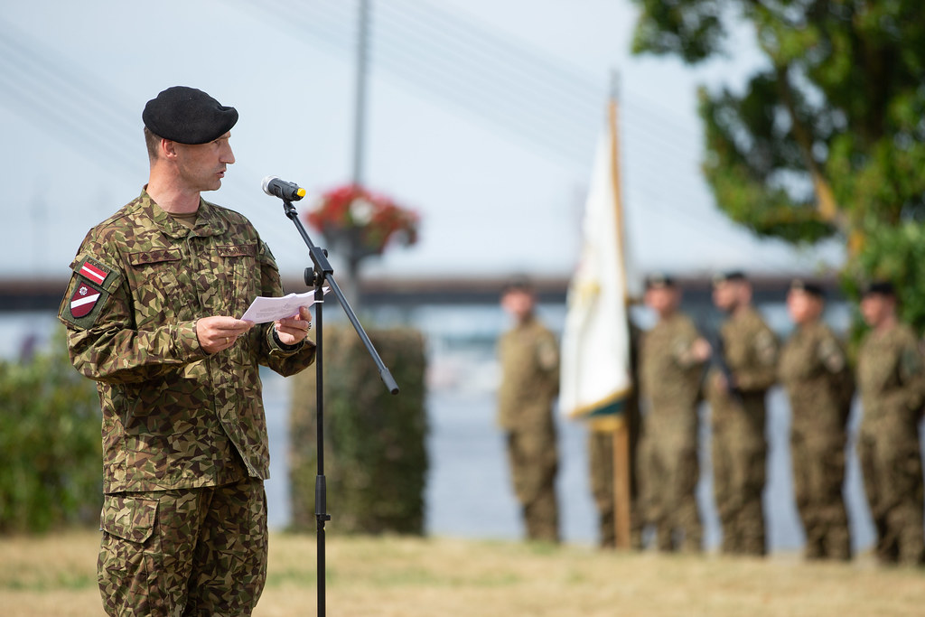 Attēlā – Aivars Krjukovs Zemessardzes 1. Rīgas brigādes komandiera maiņas ceremonijā 2021. gada jūlijā. Foto: Gatis Dieziņš/ Aizsardzībass ministrija, avots: sargs.lv