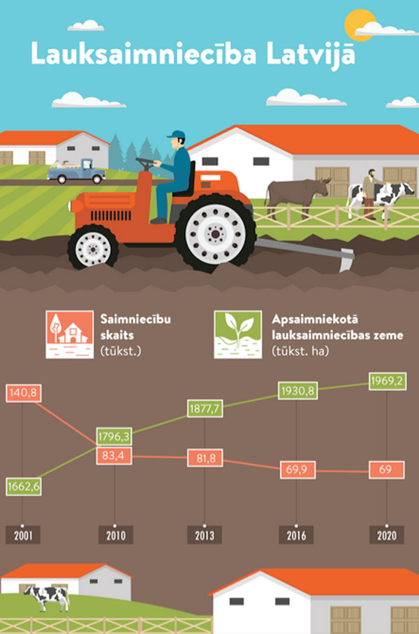 Dati: Centrālās statistikas pārvaldes lauksaimniecības skaitīšana, infografiks no «lvportals.lv»