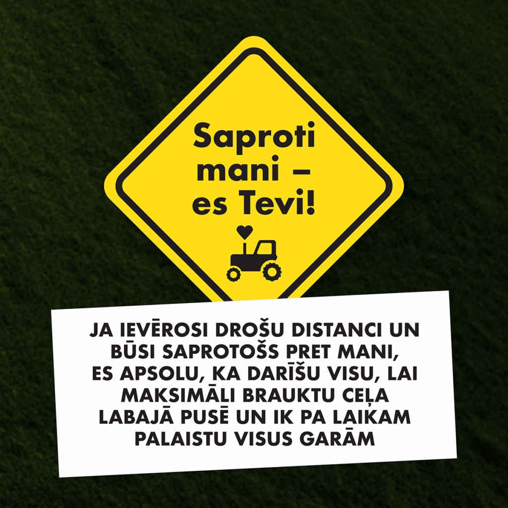 Lai izvairītos no bīstamām situācijām un novērstu nevajadzīgus ceļu satiksmes negadījumus, biedrības “Apvienība par ilgtspējīgu lauksaimniecību un lauku vidi” vadītājs Valters Zelčs aicina ievērot vairākus piesardzības pasākumus: “Primāri ir jāsaprot, ka lauksaimniecības tehnika ir liela, smaga un lēna, tādēļ autovadītājiem visas darbības, tostarp, ātruma samazināšana, ir jāveic savlaicīgi un pārdomāti. Svarīgi ļoti uzmanīgi sekot līdzi manevriem, ko uz ceļa veic lauksaimniecības tehnika. Ikdienas satiksmē nereti vieglo auto vadītāji, vēloties nogriezties pa labi, ieņem labo malējo stāvokli, taču ar smago tehniku rīcība var būt gluži pretēja. Tā, kā tehnika ir liela, tai ir nepieciešami arī plati nogriešanās leņķi. Ja tehnika ieņēmusi labo malējo stāvokli, pastāv ļoti liela iespēja, ka tā griezīsies pa kreisi vai gluži otrādi – lai nogrieztos pa labi, tehnika var pietuvoties ceļa vidus līnijai.”