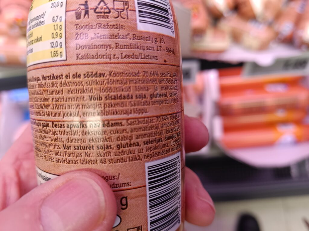 Publiskajā vidē pēc manas uzstāšanās TV24 “Lidl” izplatīja paziņojumu, ka es maldinu par desu marķējuma nepilnībām. Taisnība tirgotājam, ka marķējumā ir norādīts gaļas sastāvs. Kļūdījos. Apsekojot “Lidl” veikalu konstatēju, ka marķējums ir visur. Diemžēl, ne vienmēr draudzīgs pircējam, arī man.