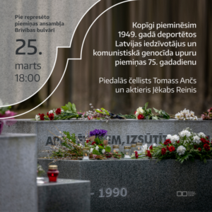 Bauskā, pie represēto piemiņas ansambļa Brīvības bulvārī, 25. martā plkst. 18 komunistiskā genocīda upuru piemiņas brīdis.