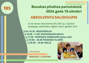 Bauskas pilsētas pamatskolā 19. oktobrī absolventu salidojums: