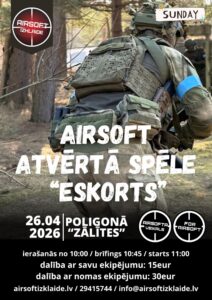 Poligonā «Zālītes» 26. aprīlī no plkst. 10 Airsoft atklātā spēle «eskorts»..