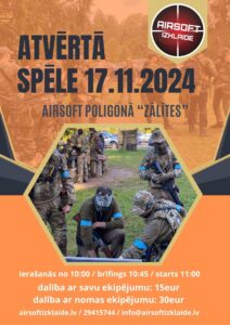 Airsoft poligonā «Zālītes» 17. novembrī no plkst. 10 airsoft atvērtā spēle.