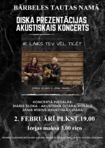 Bārbeles tautas namā 2. februārī plkst. 19 akustiskais koncerts «Ir laiks Tev vēl ticēt».