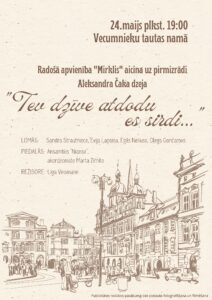 Vecumnieku tautas namā 24. maijā plkst. 19 radošā apvienība «Mirklis» aicina uz pirmizrādi – Aleksandra Čaka dzeja «Tev, dzīve, atdodu es sirdi…».