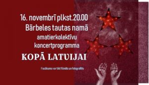 Bārbeles tautas namā 16. novembrī plkst. 20 Latvijas Republikas proklamēšanas gadadienai veltīta Bārbeles TN amatierkolektīvu koncertprogramma «Kopā Latvijai»; plkst. 22 – svētku balle kopā ar Normundu Cielavu.