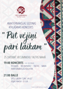 Vecumnieku tautas namā 25. oktobrī plkst. 19 amatierkolektīvu sezonas atklāšanas koncerts «Pūt, vējiņi, cauri laikiem!».