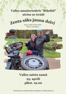 Valles saieta namā 25. aprīlī plkst. 19 Valles amatierteātra «Briedīši» izrāde «Zenta sāks jaunu dzīvi».