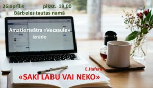 Bārbeles tautas namā 26. aprīlī plkst. 19 amatierteātra «Vecsaule» izrāde «Saki labu vai neko».