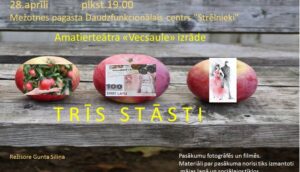 Daudzfunkcionālajā centrā «Strēlnieki» 28. aprīlī plkst. 19 amatierteātra «Vecsaule» izrāde «Trīs stāsti». Režisore Gunta Siliņa.