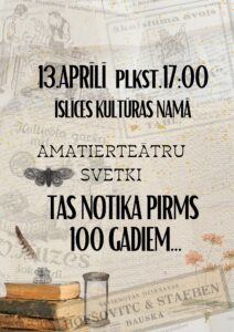 Īslīces kultūras namā 13. aprīlī plkst. 17 amatierteātru svētki «Tas notika pims 100 gadiem…»