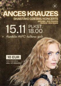 Rundāles multifunkcionālā centra kultūras zālē 15. novembrī plkst. 18 Ances Krauzes skaistāko dziesmu koncerts.