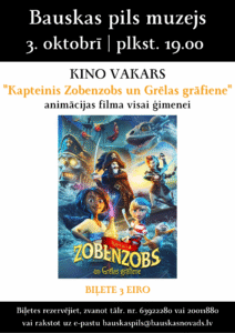 Bauskas pilī 3. oktobrī plkst. 19 animācijas filma visai ģimenei «Kapteinis Zobenzobs un Grēlas grāfiene».