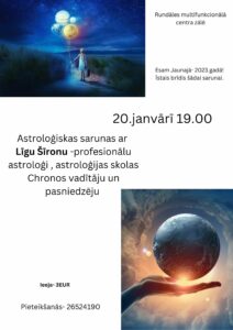 Rundāles multifunkcionālā centra zālē 20. janvārī plkst. 19 astroloģiskas sarunas ar Līgu Šīronu – profesionālu astroloģi, astroloģijas skolas «Chronos» vadītāju un pasniedzēju.