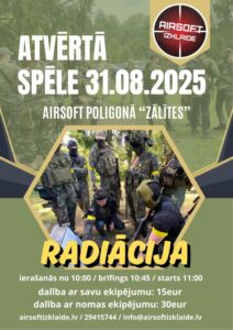 Airsofta poligonā «Zālītes» 31. augsutā no plkst. 10 atvērtā spēle.