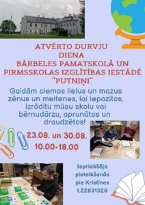 Bārbeles pamatskolā 23. un 30. augustā no plkst. 10 līdz 18 atvērto durvju diena.