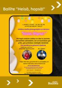 Atpūtas mājā «Dole» Codes pagastā 1. aprīlī plkst. 15 – 18 Lieldienu ballīte pieaugušajiem un bērniem «Heisā, hopsā!» – dažādas radošas, mūsdienīgas, saliedējošas aktivitātes.