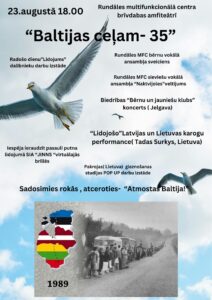 Rundāles multifunkcionālā centra brīvdabas amfiteātrī 23. augustā plkst. 18 «Baltijas ceļam – 35» – radošo dienu «Lidojums» dalībnieku darbu izstāde; Rundāles MFC bērnu vokālā ansambļa sveiciens, Rundāles MFC sieviešu vokālā ansambļa «Naktsvijoles» veltījums; biedrības «Bērnu un jauniešu klubs» koncerts (Jelgava); «Lidojošo» Latvijas un Lietuvas karogu performance; iespēja ieraudzīt pasauli putna lidojumā SIA «JINNS» virtuālajās brillēs; Pakrojas gleznošanas studijas darbu izstāde.