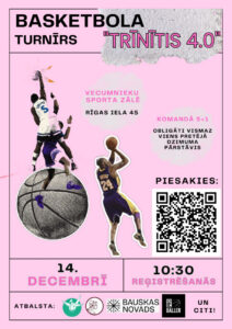 Vecumnieku sporta skolā 14. decembrī plkst. 10.30 basketbola turnīrs «Trīnītis 4.0».