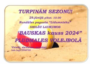 Rundāles pagasta «Līdumnieku» volejbola laukumos 29. jūnijā plkst. 10 Bauskas kauss 2024 pludmales volejbolā.