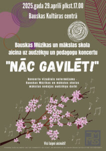 Bauskas Kultūras centrā 29. aprīlī plkst. 17 Bauskas Mūzikas un mākslas skolas audzēkņu un pedagogu koncerts «Nāc gavilēt!»
