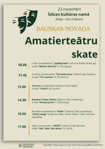 Īslīces kultūras namā 23. novembrī Bauskas novada amatierteātru skate: