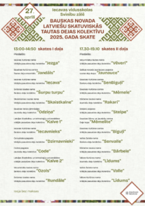 Iecavas vidusskolā 27. aprīlī plkst. 13 Bauskas novada latviešu skatuviskās tautas dejas kolektīvu 2025. gada skate.