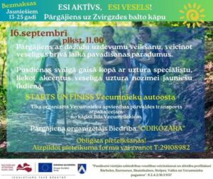 Vecumniekos 16. septembrī plkst. 11 bezmaksas pārgājiens jauniešiem no 13 līdz 25 gadiem uz Zvirgzdes balto kāpu 16. septembrī plkst. 11 – pārgājiens ar dažādu uzdevumu veikšanu, veicinot veselīgus brīvā laika pavadīšanas paradumus, pusdienas svaigā gaisā kopā ar uztura speciālistu, liekot akcentus veselīga uztura nozīmei jauniešu ikdienā.