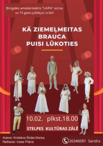 Stelpes kultūras zālē 10. februārī plkst. 18 Birzgales amatierteātra “Laipa” 15 gadu jubilejas izrāde “Kā ziemeļmeits brauca puisi lūkoties”.