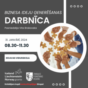 Iecavas vidusskolā 31. janvārī no plkst. 8.30 līdz 11.30 biznesa ideju ģenerēšanas darbnīca jauniešiem.