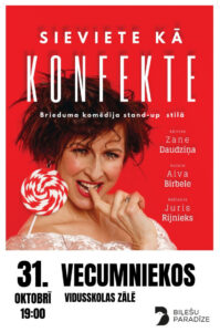 Vecumnieku vidusskolā 31. oktobrī plkst. 19 brieduma komēdija stand-up stilā “SIEVIETE KĀ KONFEKTE”.