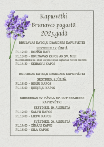 plkst. 13 – Brunavas kapos ar Sv. misi (lietainā laikā mise un procesijas lūgšanas notiks baznīcā);