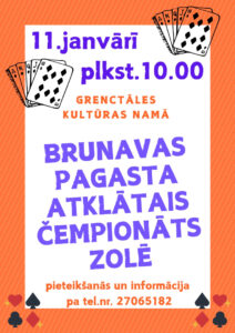 Grenctāles kultūras namā 11. janvārī plkst. 10 Brunavas pagasta atklātais čempionāts zolītē. 1. posms.