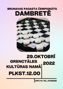 Grenctāles kultūras namā 29. oktobrī plkst. 12 Brunavas pagasta čempionāts dambretē.