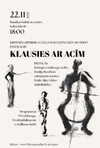 Bauskas Kultūras centrā 22. novembrī plkst. 18 čellists Kristaps Grīnbergs koncertprojektā “Klausies ar acīm”.