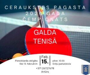Griķu pamatskolā 15. februārī plkst. 10 Ceraukstes pagasta 2026. gada čempionāts galda tenisā.