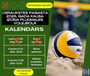 Atpūtas kompleksā «Rožmalas» 17. augustā plkst. 11 Ceraukstes pagasta kausa izcīņa pludmales volejbolā. III posms.