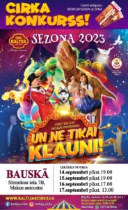 Bauskā, Slimnīcas ielā 7b (blakus autoostai), 14. un 15. septembrī plkst. 19, 16. septembrī plkst. 17, 17. septembrī plkst. 13 cirks «Baltija» ar programmu «Un ne tikai klauni!».