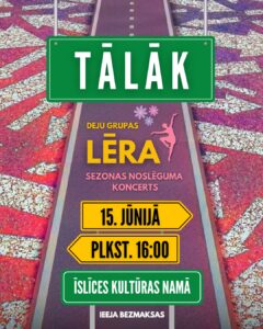 Īslīces kultūras namā 15. jūnijā plkst. 16 deju grupas «Lēra» sezonas noslēguma koncerts.
